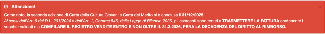 A tal proposito, per non far decadere il diritto al rimborso, vi ricordiamo che è NECESSARIO trasmettere la FATTURA contenente i buoni validati e compilare il registro vendite ENTRO e NON OLTRE il 31/03/2026